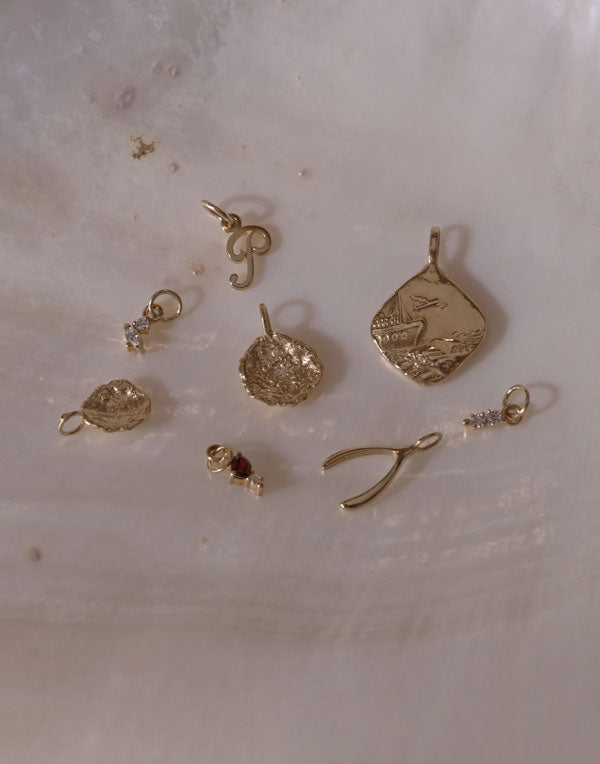 9 symbolic pendants to mix and match into your necklace stack. Each piece is imbued with its own symbolic meaning and crafted in 9k Solid Gold. These charms are a thoughtful gift for yourself or a loved one, with a special meaning intended for the wearer.