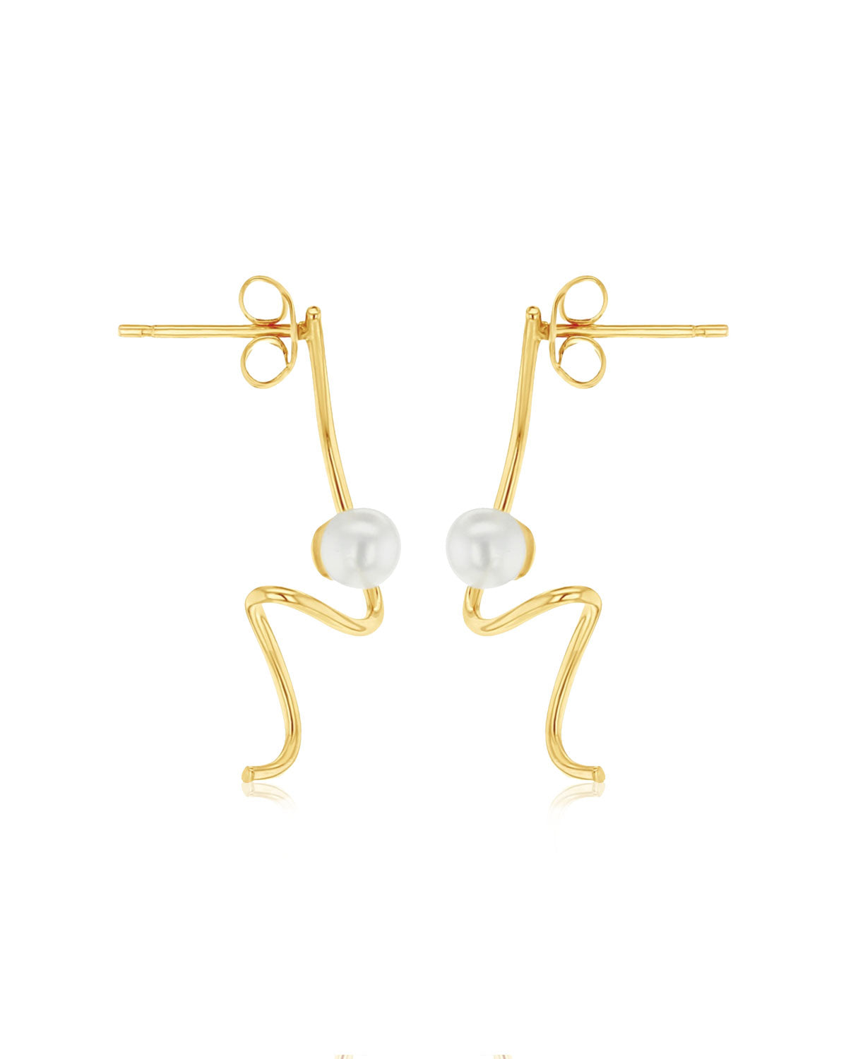 9k Solid Gold (Pair) Squiggle Pearl Earrings $448.00