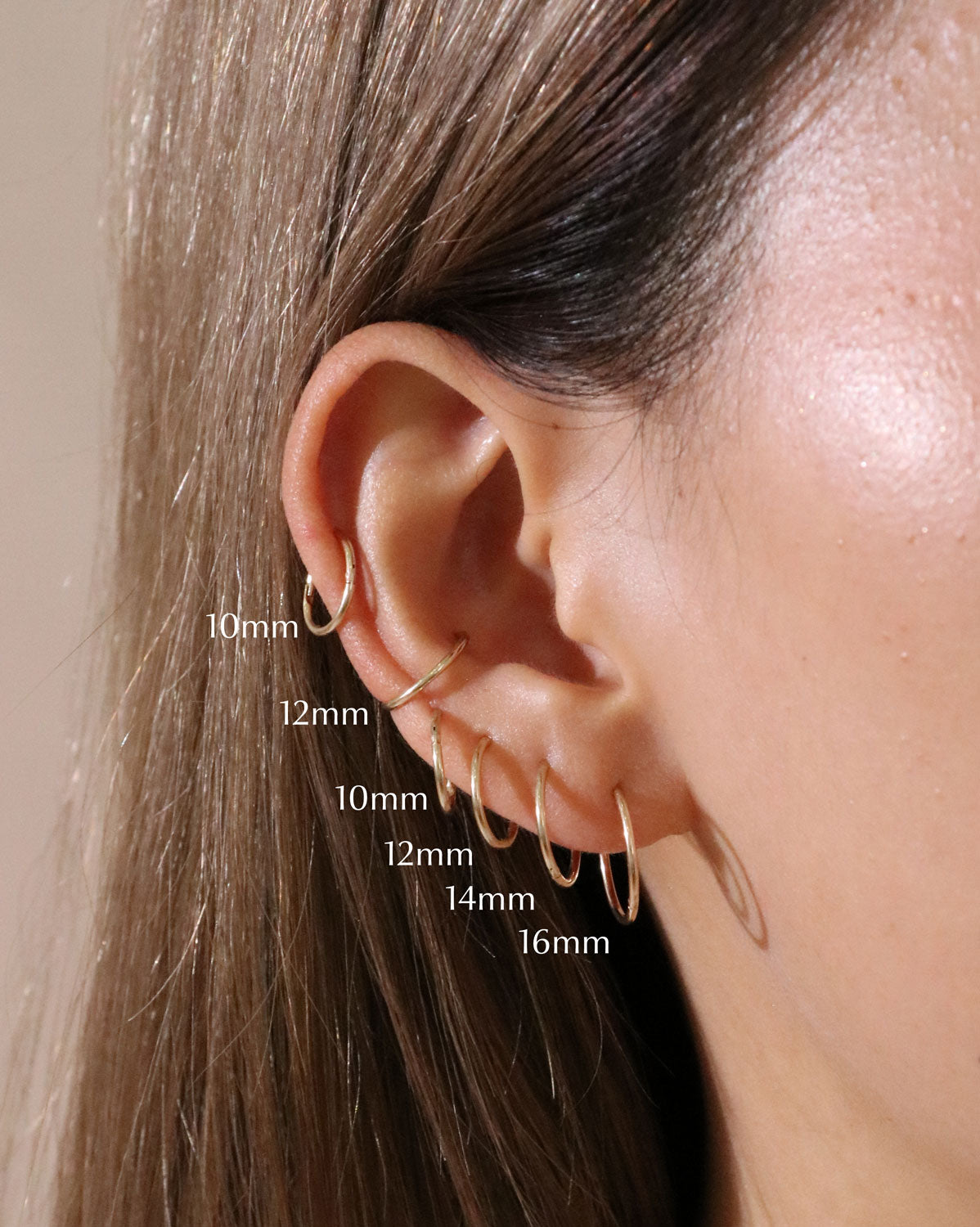 Huggies: Huggies are another type of hoop that are small and fit closely or 'hug' the ear when worn.