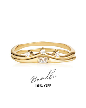 Save 10% off the individual price when you purchase our Crown Wave Ring and Baguette Wave Ring together as a set.
